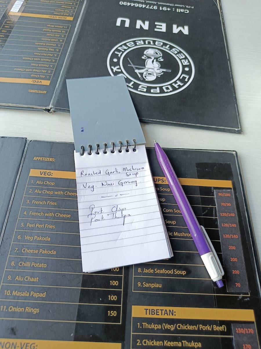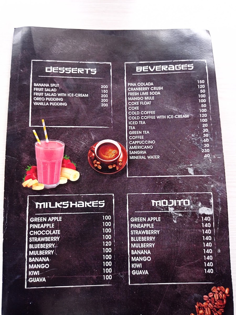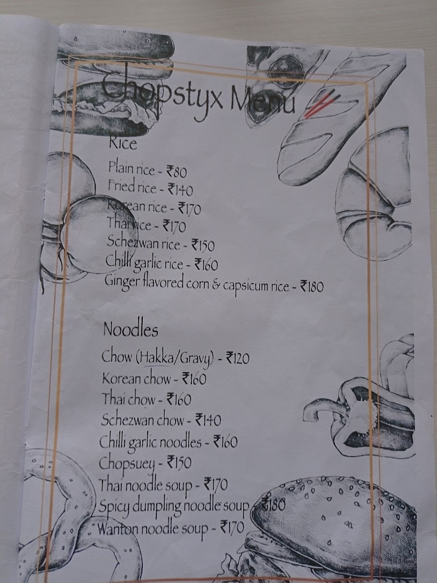 The main menu additionally includes a variety of Chinese and seafood specialties. Signature offerings include noodle and rice dishes such as Thukpa, Thai Noodle, Fried Rice Chicken, Pork Chips, Pork Ribs, Chinese Noodles, Rice Momo, Fried Rice Noodles, Chilli Dry Pork, Gravy Chicken Noodle, and Chilli Butter Chicken. There are also items like Steamed Momo and Beef Burger to accommodate different tastes.